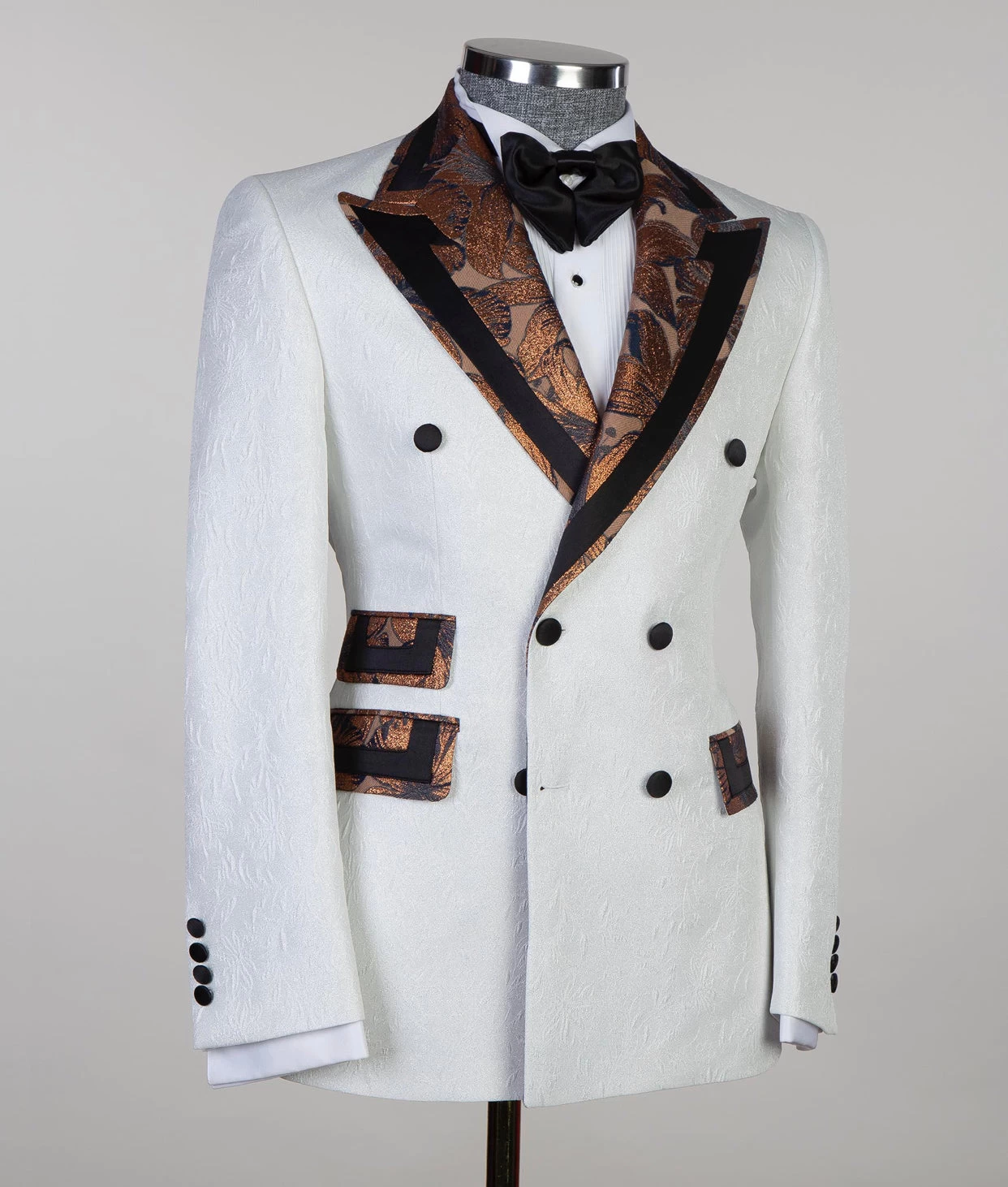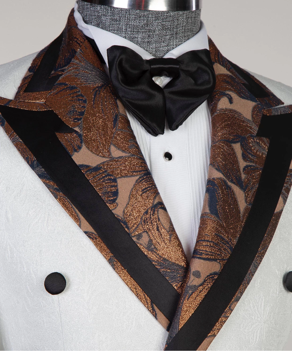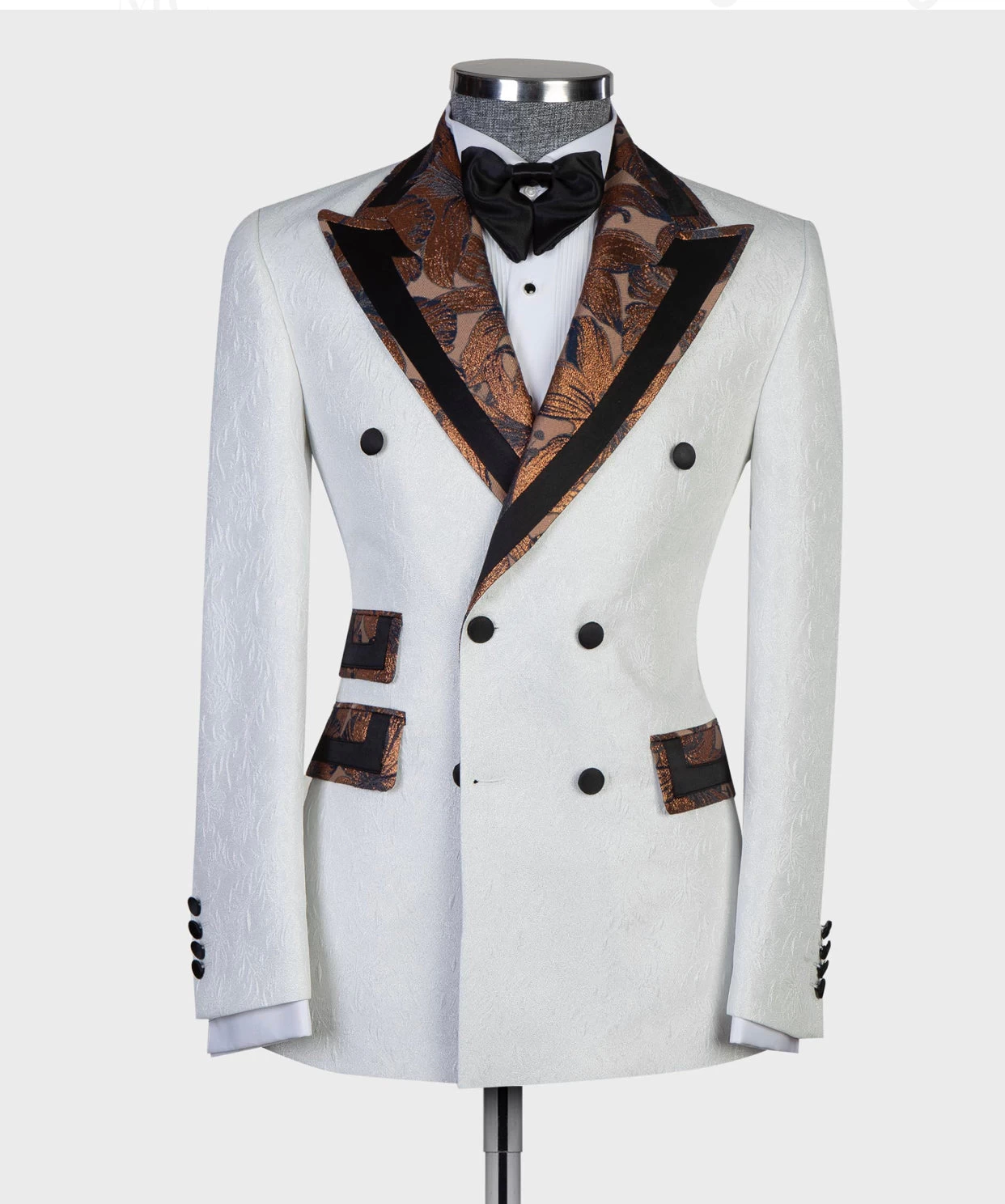 Double breasted suit by JM Menswear, woven in virgin wool with a refined micro pattern. comprising a double-breasted jacket and straight-leg trousers and vest, this modern suit is offered in a regular fit with a sharp silhouette that doesn’t feel restrictive.