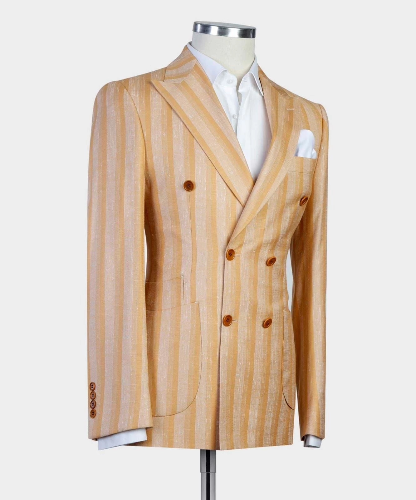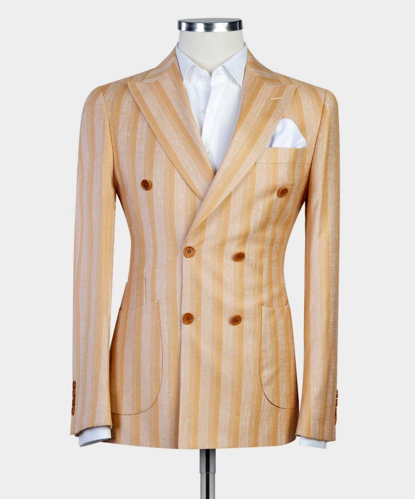 double breasted suit by JM Menswear. Created in silk-wool with a luxurious feel, this modern suit is cut to a relaxed fit and comprises trousers and  a double-breasted jacket with silk accents throughout.