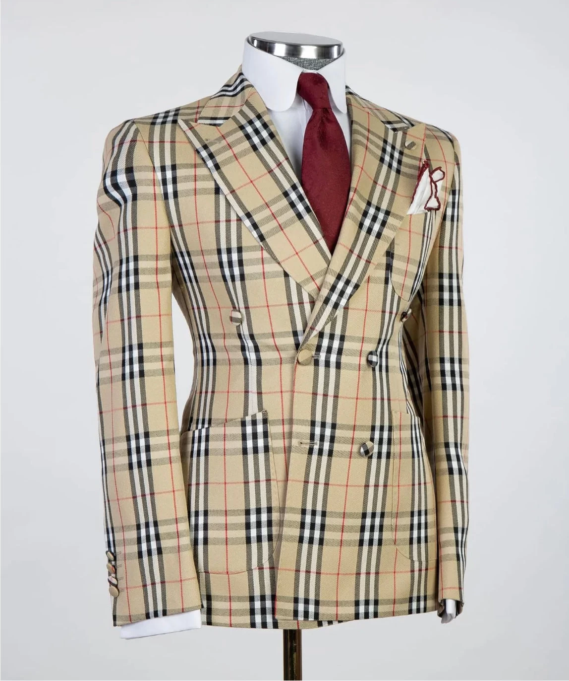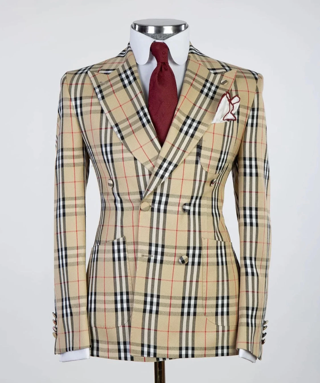 Double breasted Suit by JM Menswear, Woven in Virgin wool with a refined micro pattern. Comprising a single-breasted jacket and straight-leg trousers, and vest. this modern suit is offered in a regular fit with a sharp silhouette that doesn’t feel restrictive.