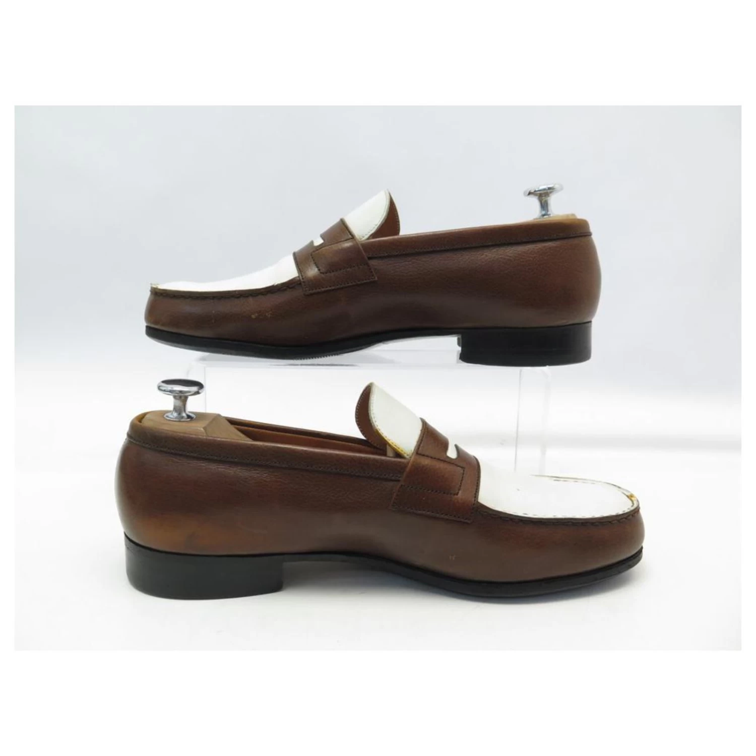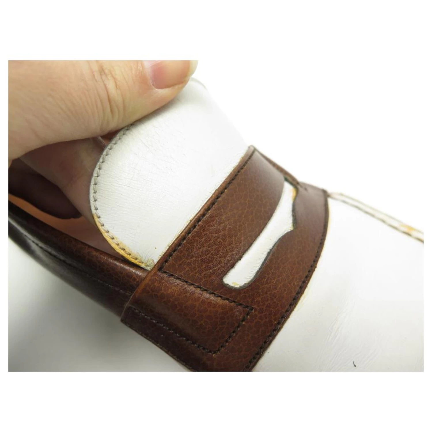 To note: brown and white leather