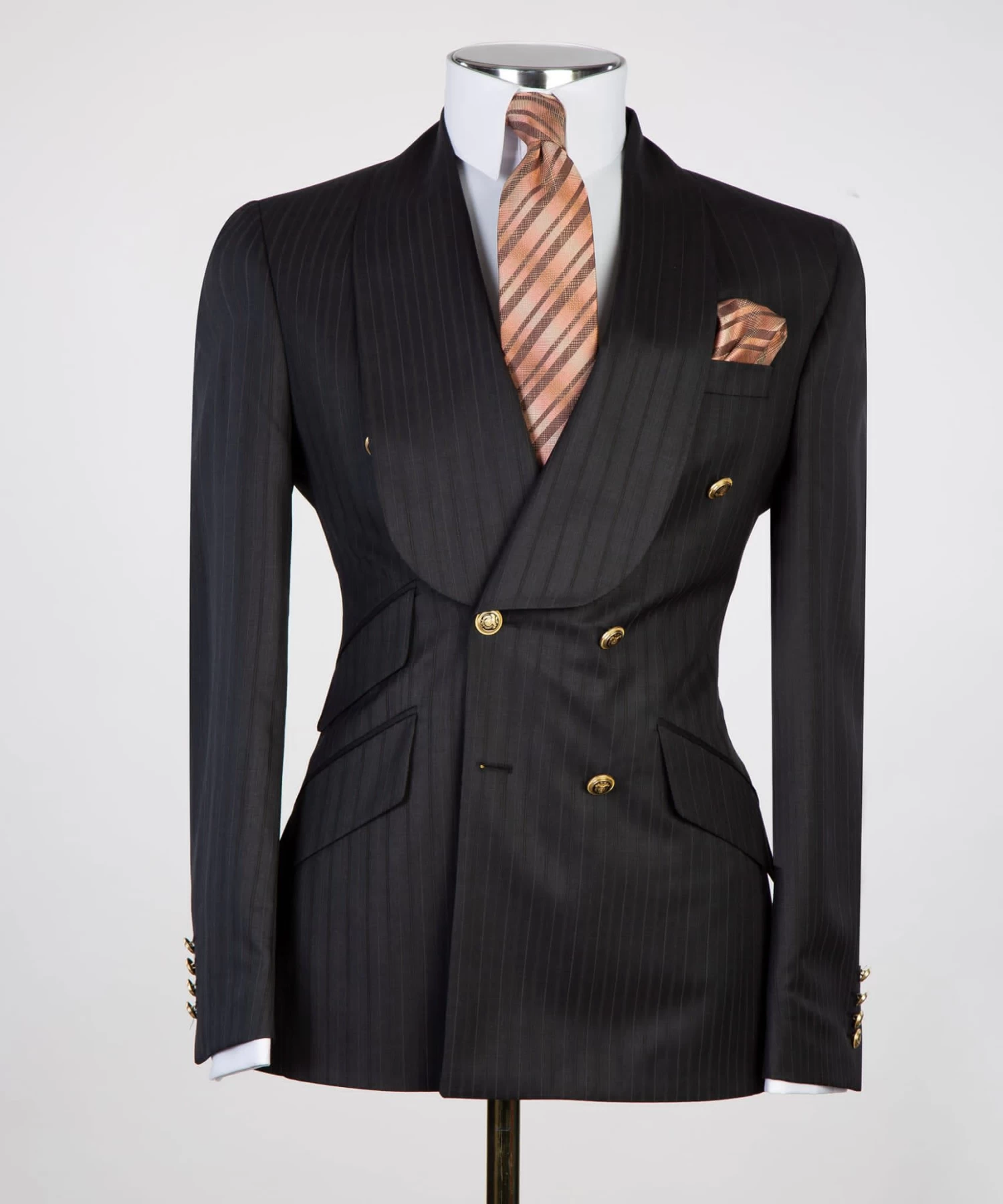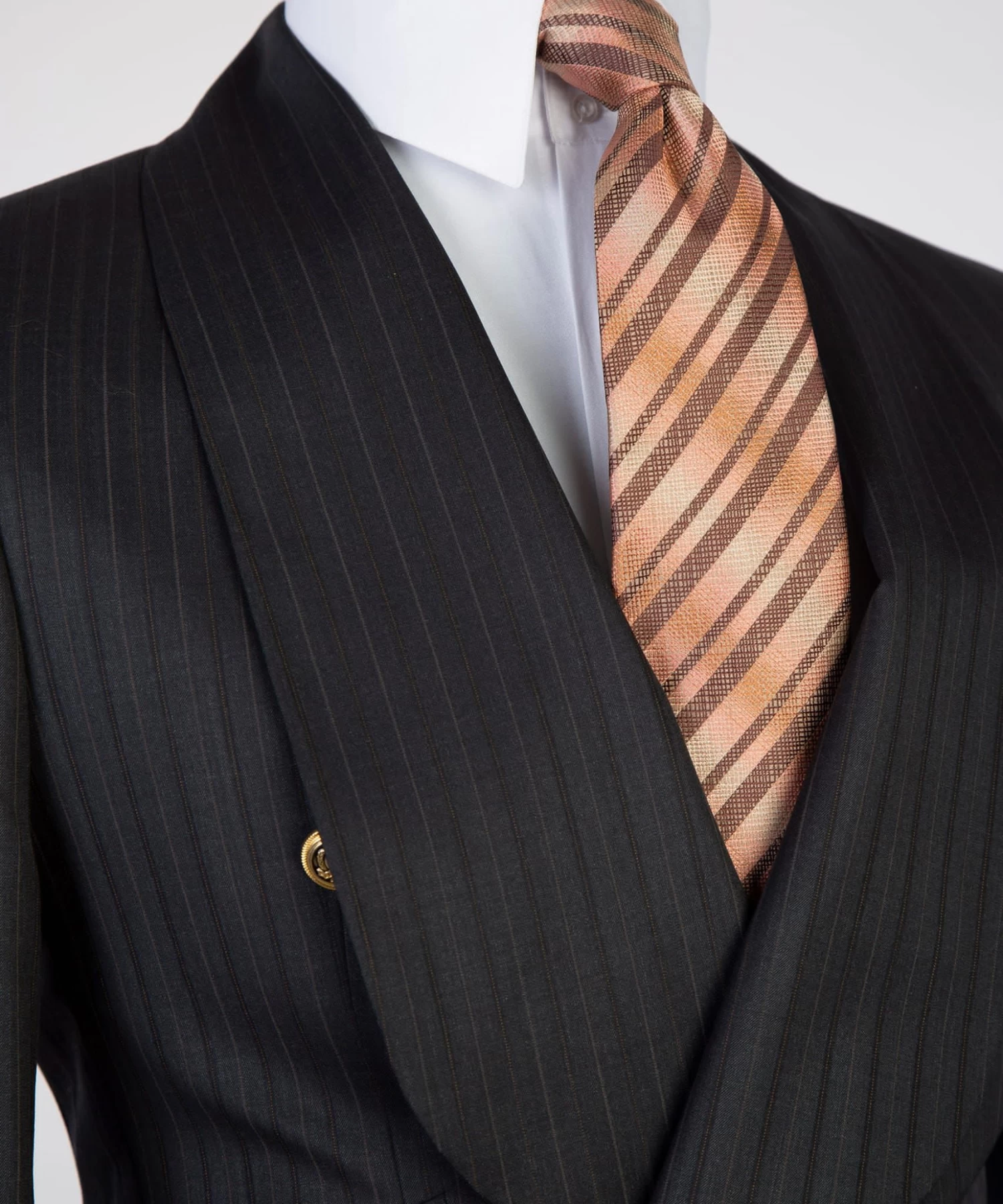 An expertly tailored tuxedo by JM Menswear,Created in virgin wool with natural stretch for wearing comfort. Trimmed with silk accents at the lapels, pocket and pant side seams, this three-pieces tuxedo is cut to a defined fit for a modern silhouette, silk-covered buttons add the finishing touch to this timeless ensemble.