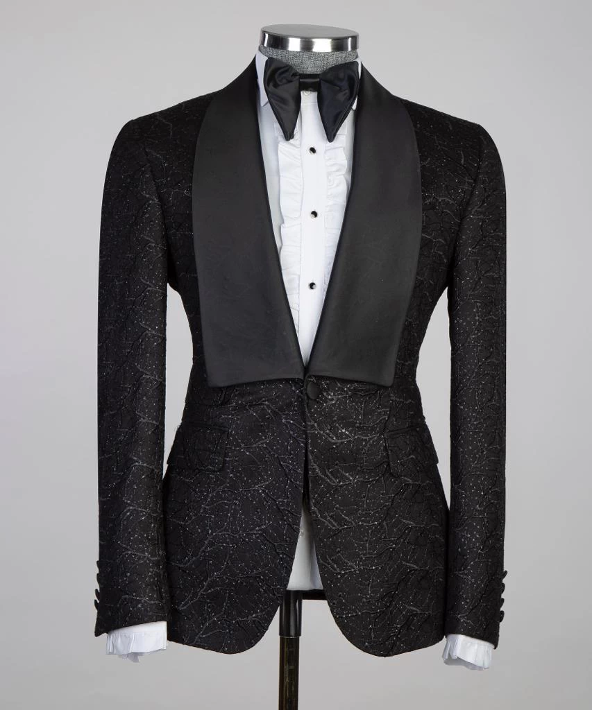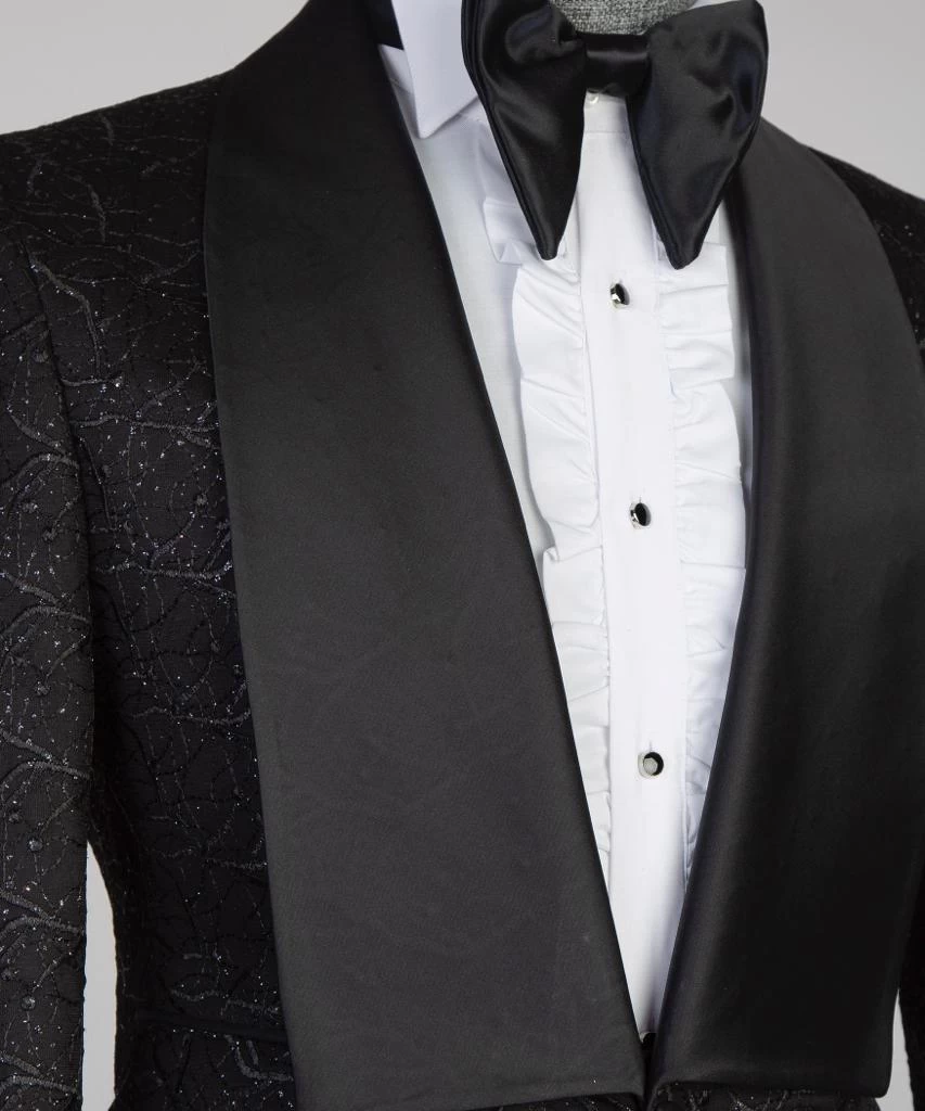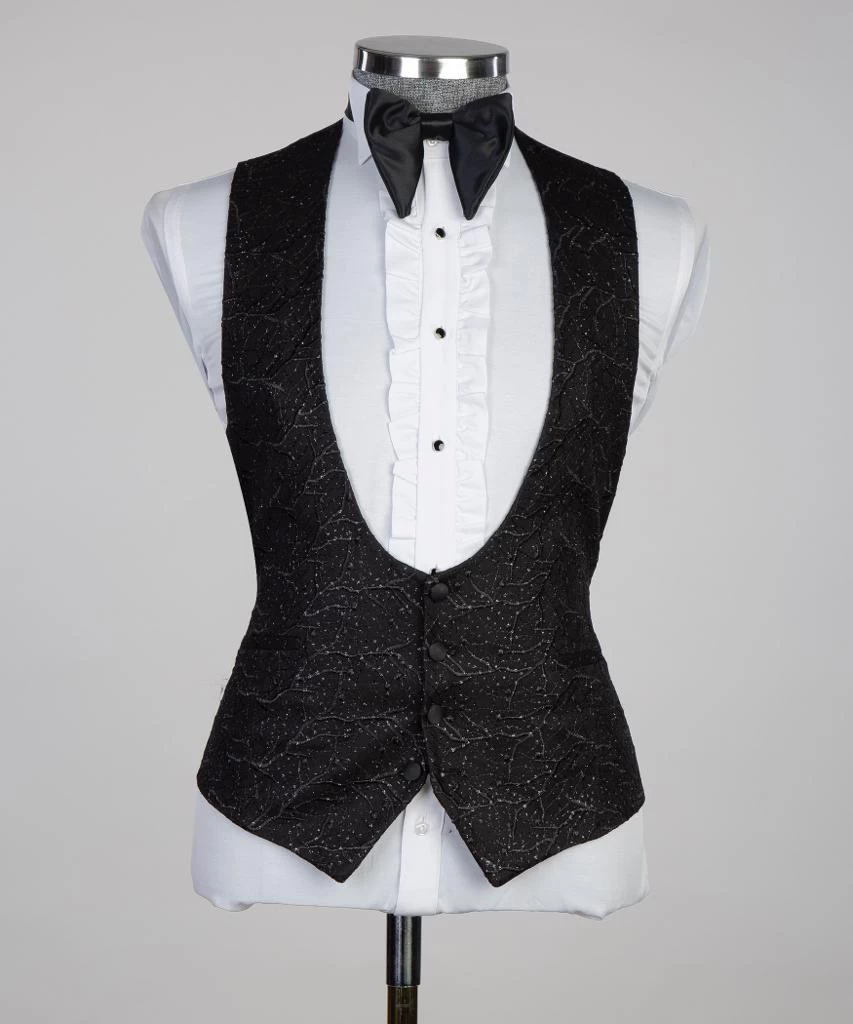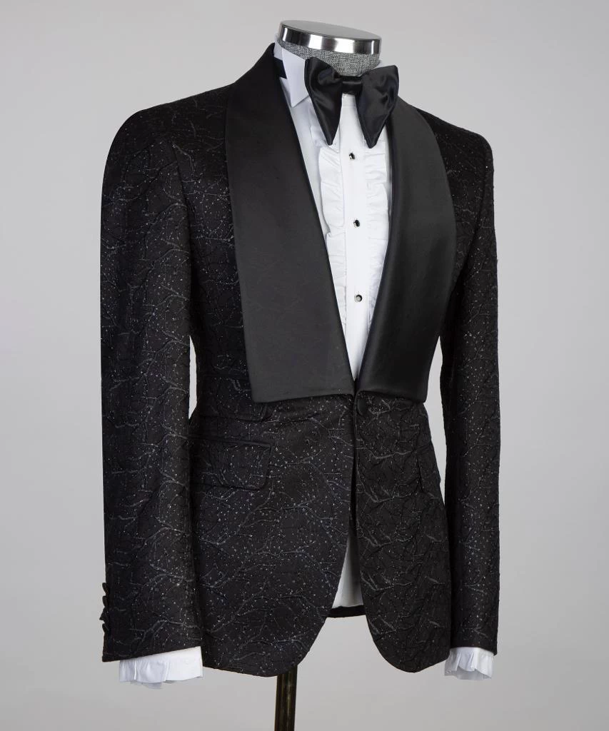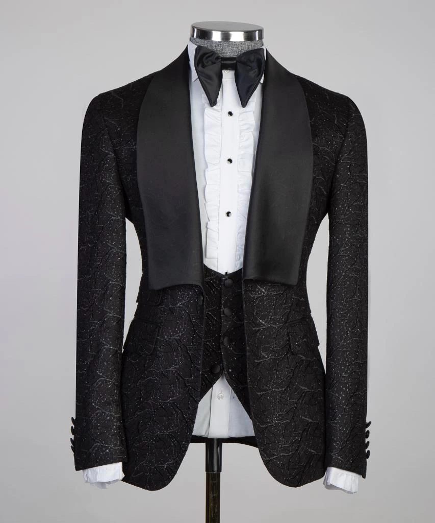 Three-pieces Suit by JM Menswear. Created in silk-wool for a luxurious feel, this modern suit is cut to a relaxed fit and comprises trousers and a single-breasted jacket with silk accents throughout