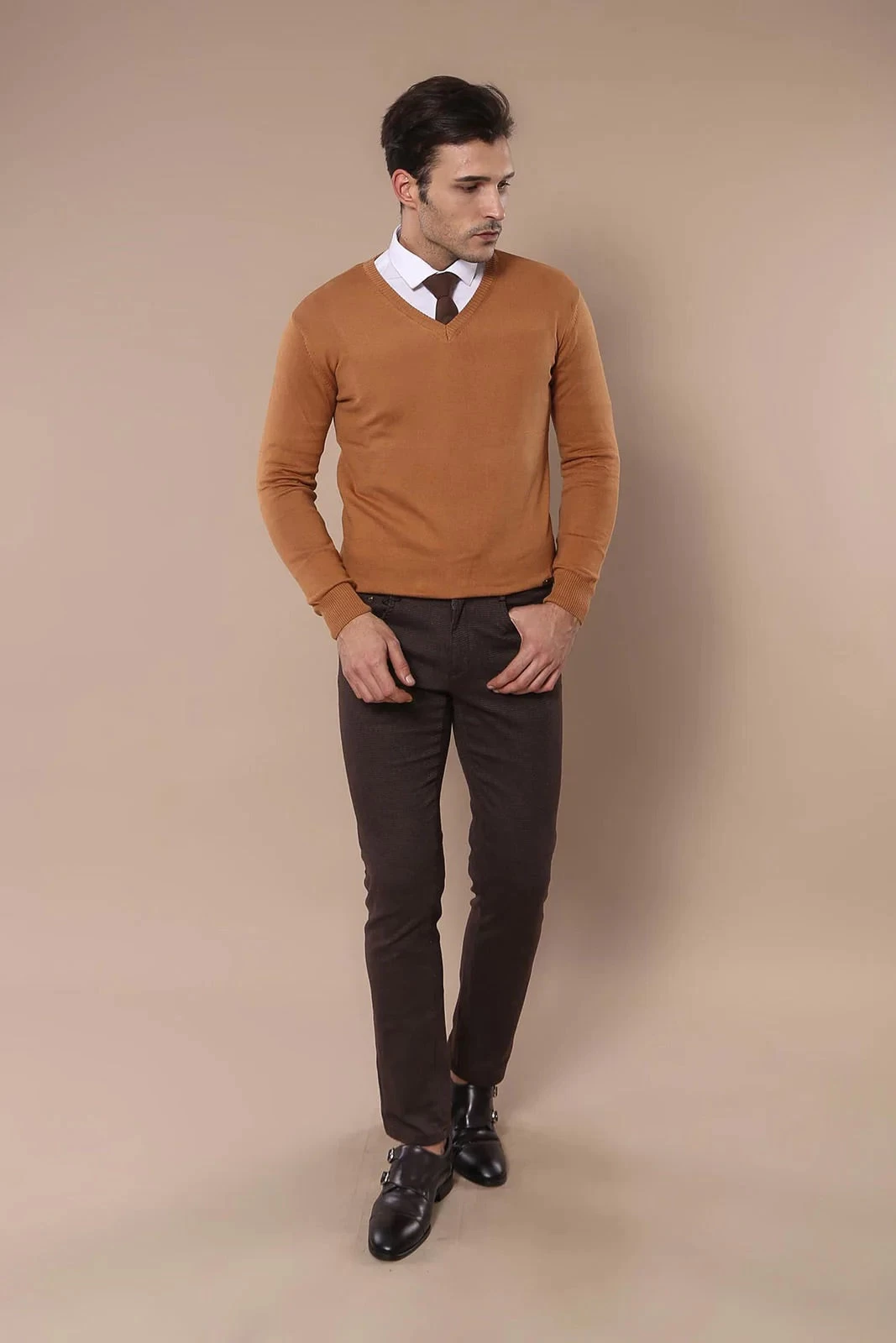 The Classic, timeless,and versatile V-neck sweater is a must-have for any wardrobe. It can be styled with jeans and a blazer for a polished look at the office or with joggers and sneakers for an off-duty vibe.