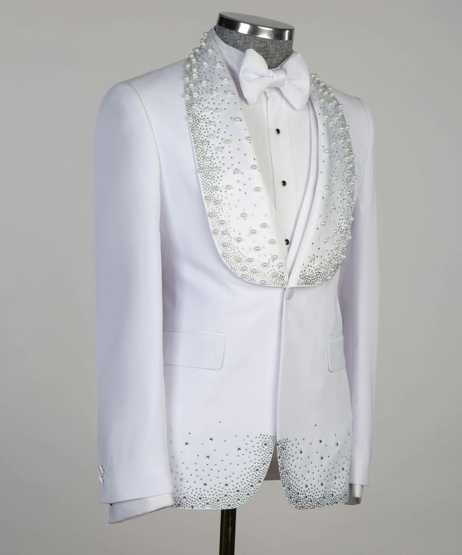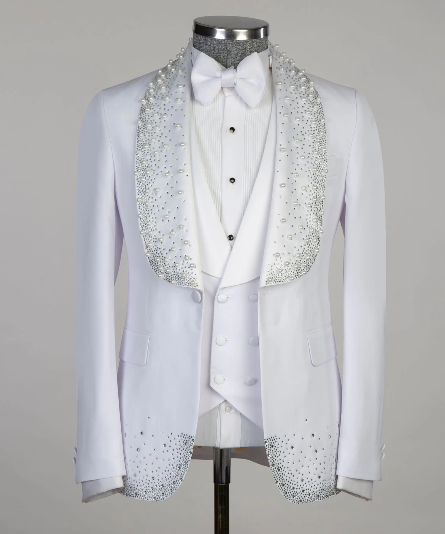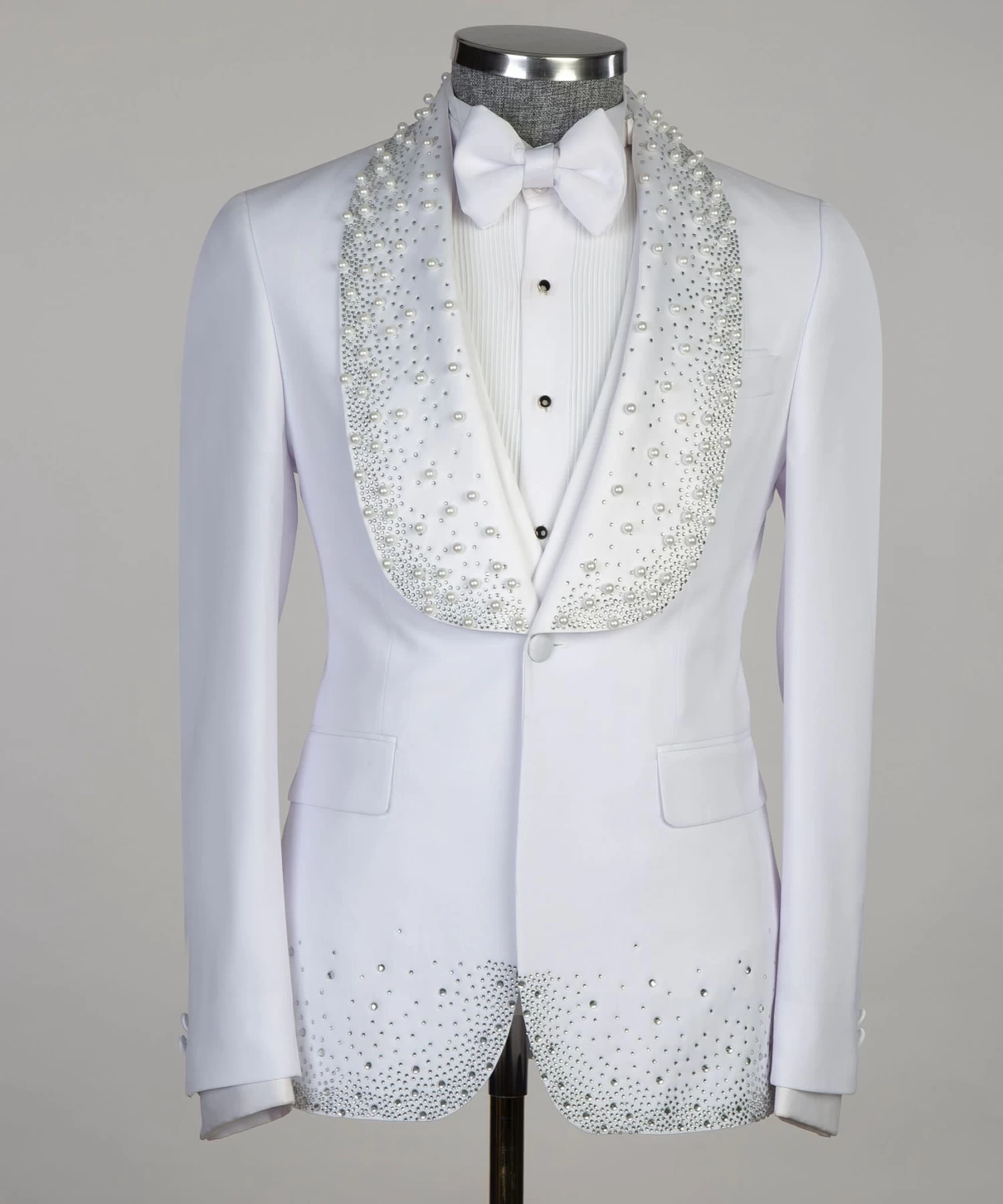 3 pieces Suit by JM Menswear.Created in silk-wool for a luxurious feel,this modern suit is cut to a relaxed fit and comprises trousers and a single-breasted jacket with silk accents throughout.Complete the look with JM Menswear accessories for effortless refinement.